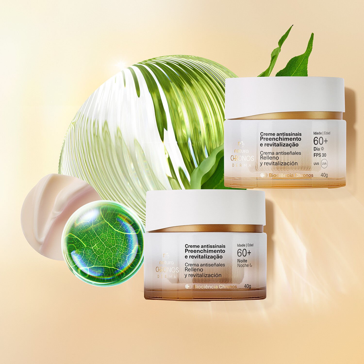 unión de potentes bioactivos de la naturaleza y dermoactivos para cuidar tu piel. el bioactivo Candeia estimula el ácido hialurónico natural de la piel. por su parte, el dermoactivo Doble ácido hialurónico rellena la superficie y las capas profundas de la piel