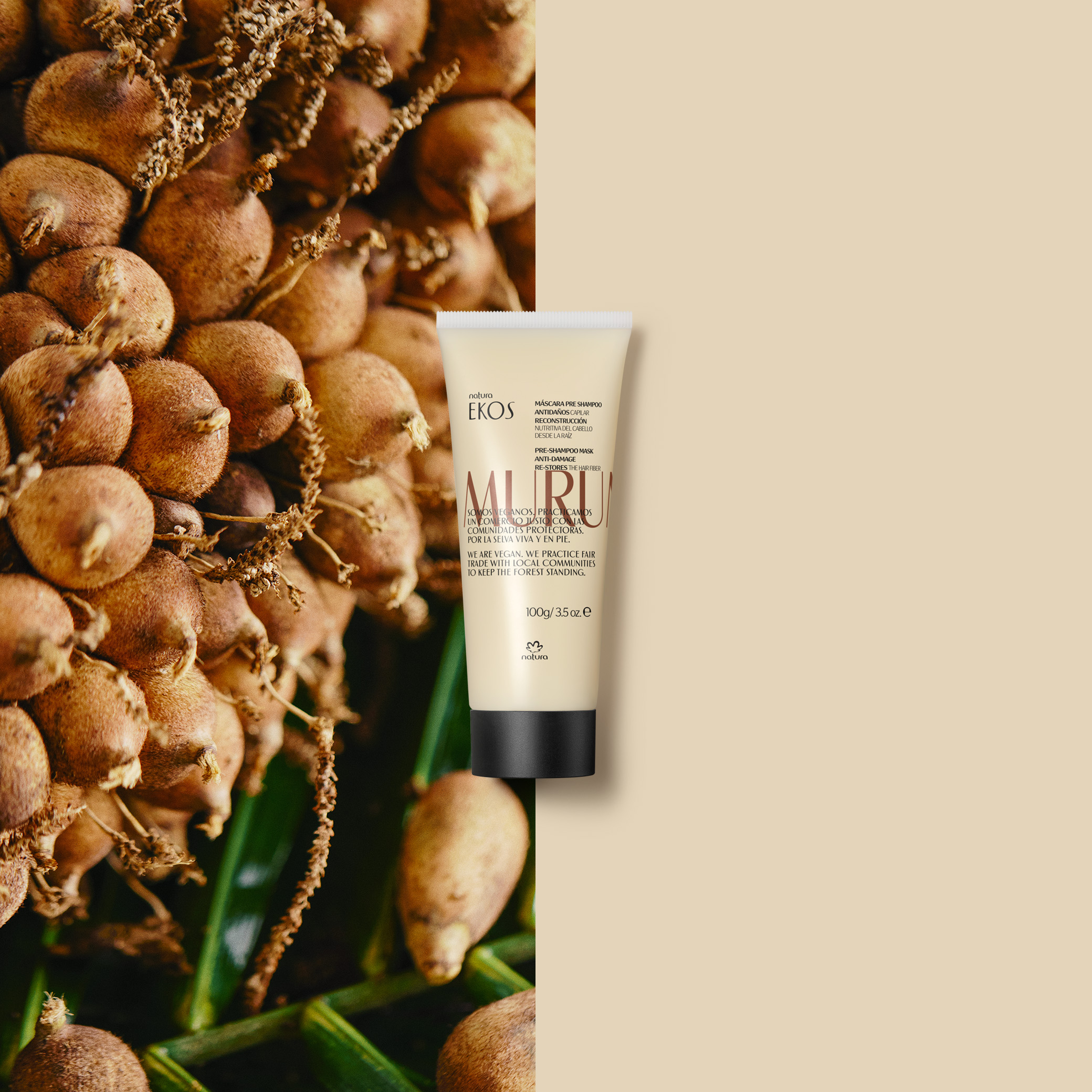 somos veganos, a base de ingredientes de origen natural, con bioactivos de la Amazonía, biocompatibles con la piel y el cabello, y altamente biodegradables en el medio ambiente. al elegir un producto de la línea Ekos Murumuru, fortaleces a 2.049 familias guardianas de la selva, contribuyendo a la regeneración de la Amazonía