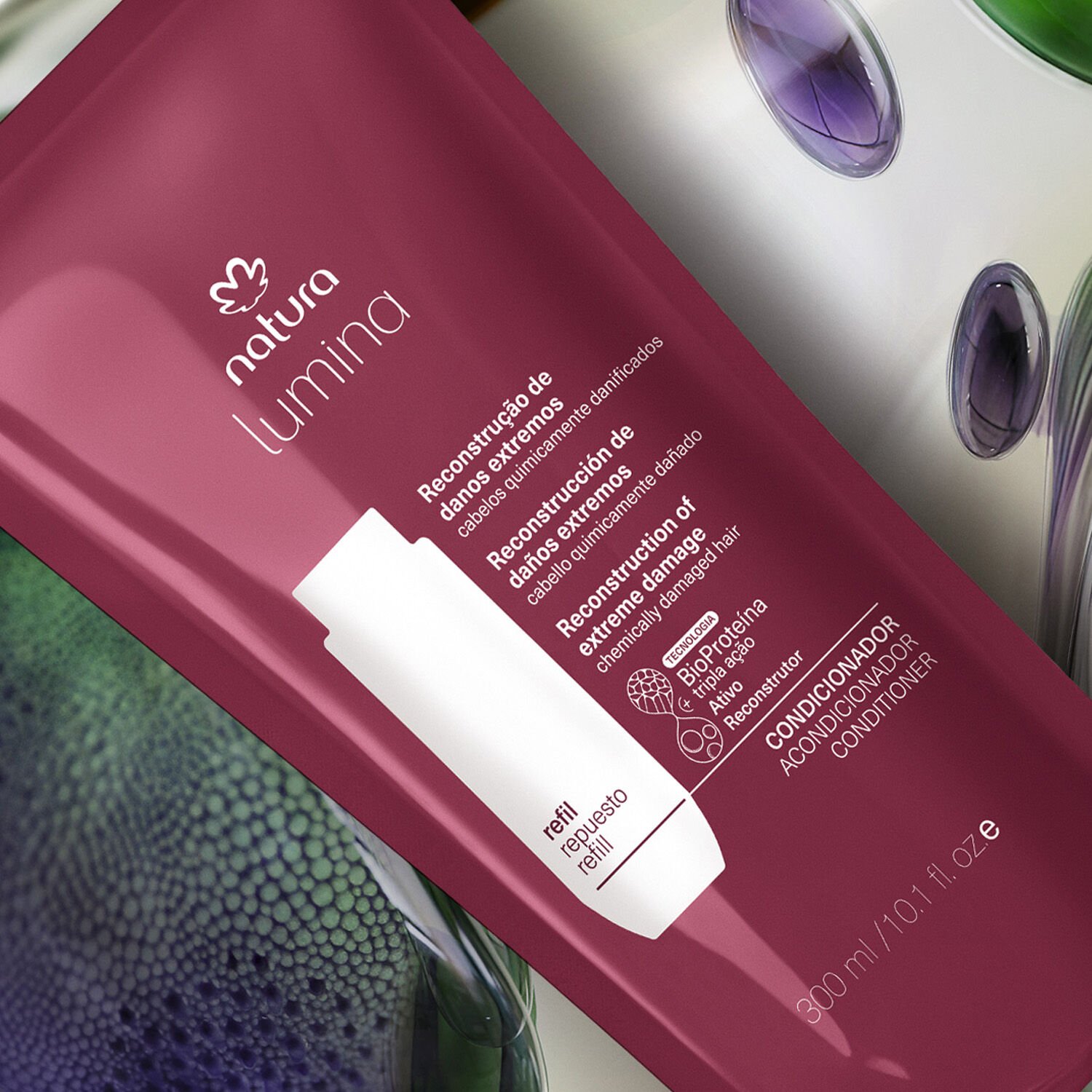 BioProteína Triple Acción + Activo Reconstruidor: exclusiva combinación de activos que actúan en el relleno inteligente de los daños internos y la reparación externa de la fibra capilar. promueven la reposición de lípidos y la reestructuración de las cutículas del cabello. activo reconstruidor: un complejo de lipoproteínas vegetales de alta densidad molecular, rico en nutrientes, vitaminas y minerales capaces de depositar los lípidos esenciales perdidos en la fibra capilar